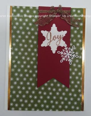 Good Friday morning everyone. Hope you’ve had a productive week and are making some fun plans for the weekend. I know I am. If you live in the Central New Jersey area, this Sunday November 18th, I will be at a Holiday Craft Show at Immaculata High School in Somerville. Please stop by to say ‘Hi”. I have some great teacher gifts and stocking stuffers. I have 2 baskets filled with Stampin’ Up products that I will be raffling off and over 100 cards that I will be selling.