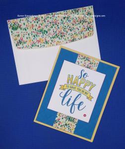 To finish my card, I adhered a piece of the Share What You Love Specialty DSP to a Medium Very Vanilla Envelope flap. There you have it a very quick and easy card that looks like it took you hours to make.