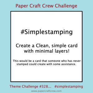 The next one is Paper Craft Crew Simple Stamping Theme Challenge #328. I don’t do simple that often, but I really enjoyed it with this card. This one was a little harder since I’m so used to using multiple layers. Here’s their challenge.