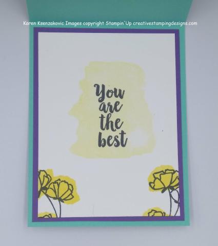 1. Excellent take on the sketch, and perfect balance of the colors. Very nice to have the inside and envelope ‘finish’, too! Thank you for sharing at AHSC this week.