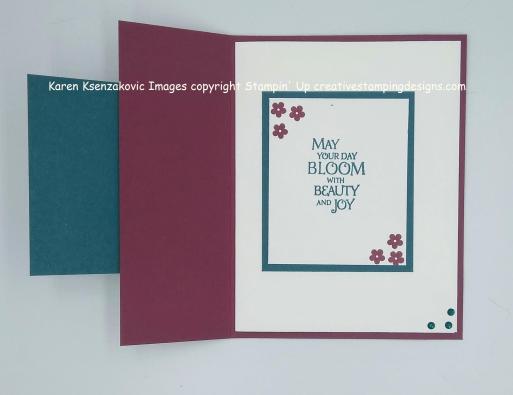 I have another fun fold card for you today that I’ve never done before. I’ve seen this fold, but never attempted it. I would love to hear from you if you’d like me to continue with my Fun Fold Fridays. Please leave a comment or you can email me at creativestampingdesigns@gmail.com.