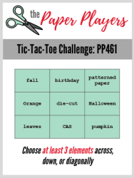 My card played along with a couple challenges. First off is The Paper Players Tic-Tac-Toe Challenge #461. Here is their challenge. I went diagonally from the top left to the bottom right.