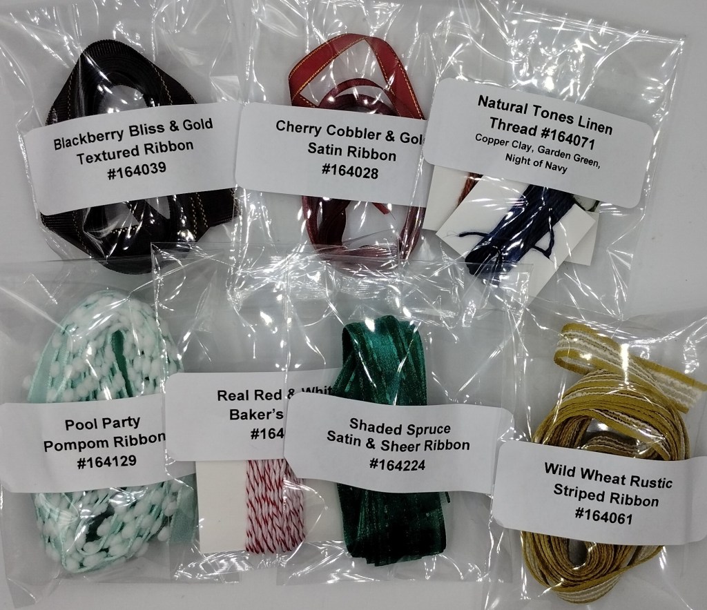 I’m also offering an Embellishment Share. I will divide the embellishments up and package them in a cello bag with the name and number for easy ordering, just like I do with the paper and ribbon.