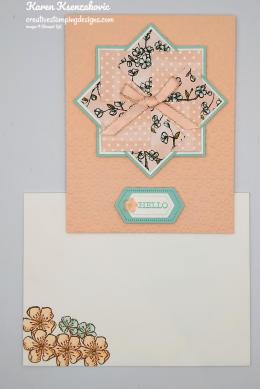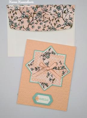 • Petal Pink Cardstock 4 1/4″ X 11″ (card base scored and folded at 5 1/2″), 4 1/4″ X 5 1/2″ (card front)