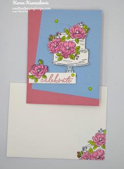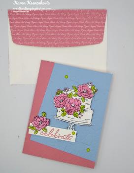 What a great card! I just love that cake! It looks so delicious! Your matching envelope is so sweet as well! Thanks for joining us this week at Freshly Made Sketches!