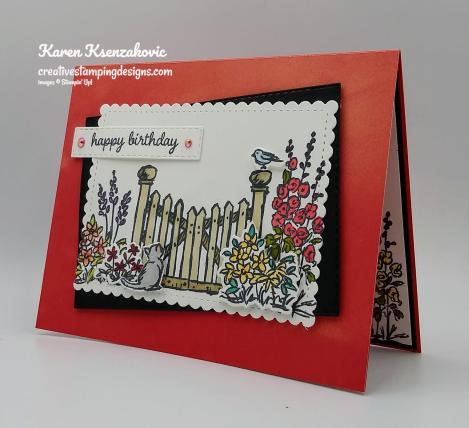Oh – this is gorgeous! The Peaceful Poppies paper you chose is one of my faves with the watercolor look. And then the lovely garden gate. Perfect!