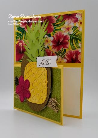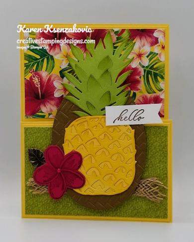 Today’s fun fold card is a pretty quick one.  My daughter has been asking me to make a card using the pineapple from the In The Tropics Dies. Here’s my card.
