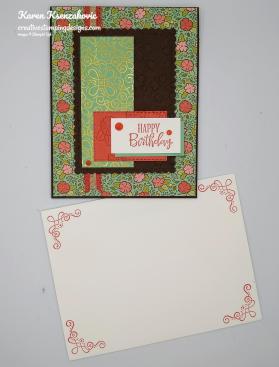 - Ornate Garden Specialty Designer Series Paper 4 1/8″ X 5 3/8″ (card front), 1 1/2″ X 3 11/16″ (layering panel), 2 1/4″ X 6″ (piece for envelope flap)