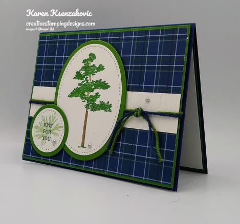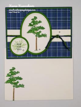 Karen, I like the color combo on this eye-catching card. The tree looks awesome. I’ll have to remember this set when making a male card.