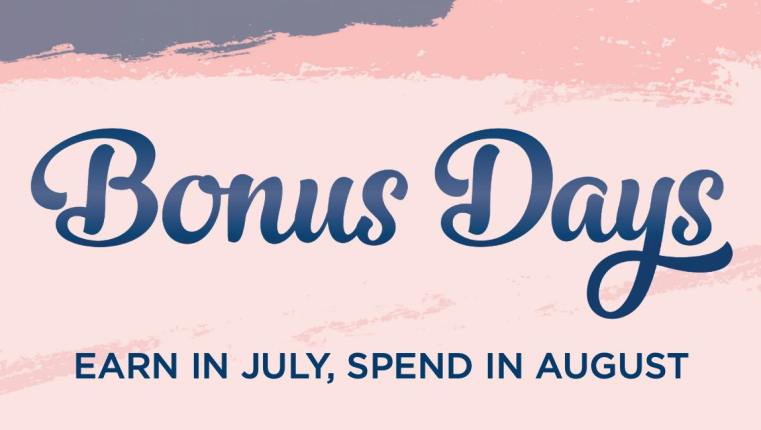 Bonus Days from Stampin’ Up! are back!! For every $50 merchandise that you purchase between July 1 and August 3, you’ll earn a $5 coupon that can be redeemed between August 4 and 31!