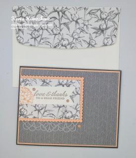 I stamped the butterfly image from the Stampin’ Up! Beauty Abounds Cling Stamp Set in Tuxedo Black Memento Ink above the rose and colored it using my Pumpkin Pie Stampin’ Blends Markers.