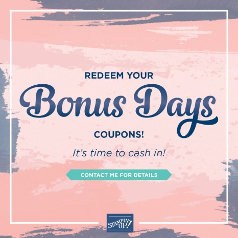 IT’S TIME TO REDEEM THOSE BONUS DAYS COUPONS YOU EARNED IN JULY!!
