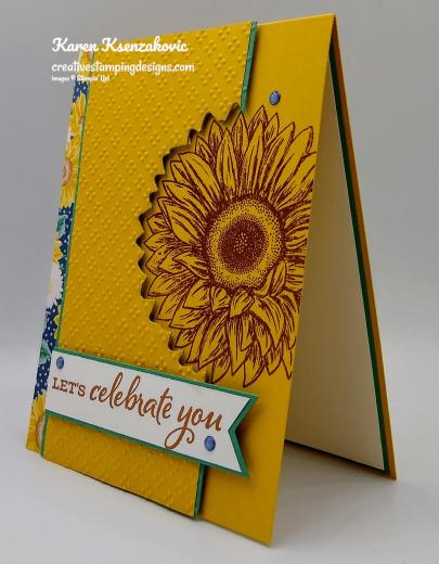 A great card, Karen! I love this fun design and the way the die cut fits around the wonderful sunflower! Thanks for joining in at the Watercooler Wednesday Challenge this week. Take care! 🙂