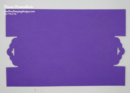 I started by making a little mark with a pencil at the 1″ mark on the 5 1/2″ side of a panel of Gorgeous Grape cardstock.  I flipped the panel over the long way and made a pencil mark at the 1″ mark on the back of the other side.