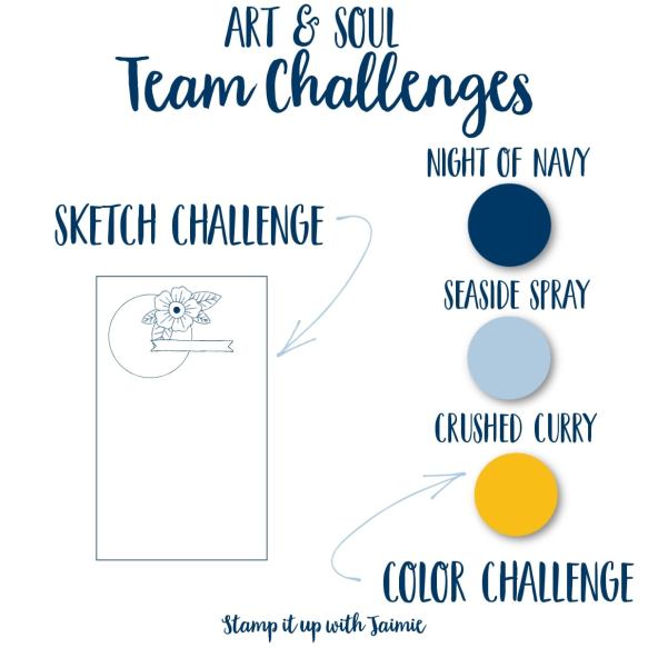 My upline Jaimie Babarczy is doing a challenge for our team this month. Each week she is giving us a sketch and color challenge. I used the colors, but switched the side of the sketch. This was a bit of a challenge for me since those that know me, know Crushed Curry is my least favorite color. Here’s this weeks challenge.