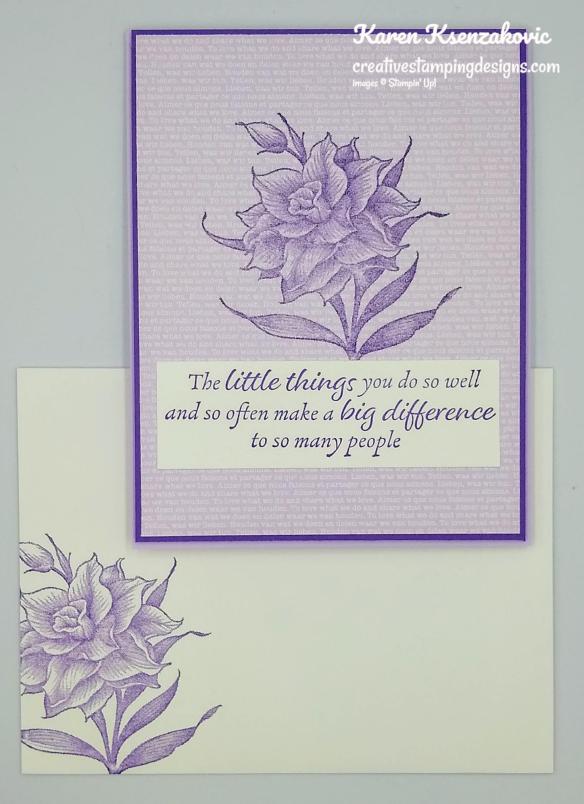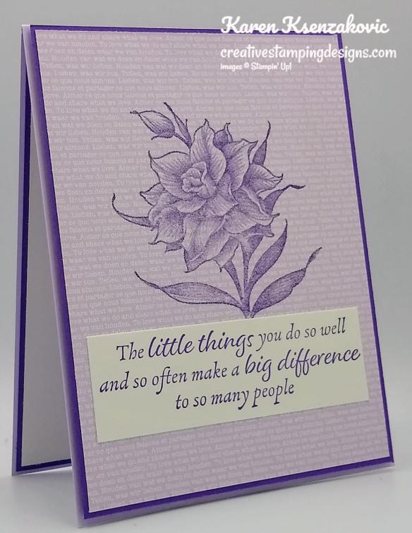 I adhered the card front to a Purple Posy card base using Stampin’ Dimensionals.