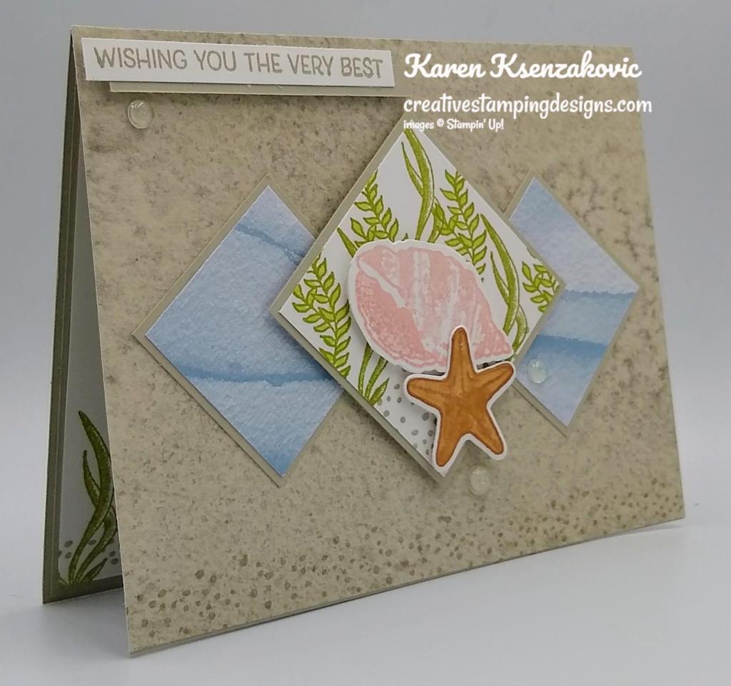 I used the Stampin’ Up! Friends Are Like Seashells Bundle for my card today along with the Sand & Sea Designer Series Paper.