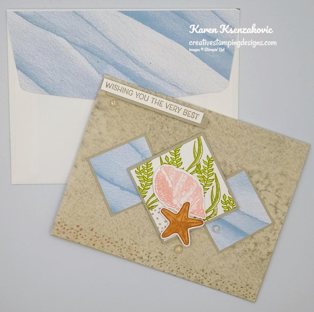 • Sand & Sea Designer Series Paper 4 1/4″ X 5 1/2″ (card front), 2 – 1 1/2″ X 1 1/2″ (card front panels), 2 1/2″ X 6″ (envelope flap)