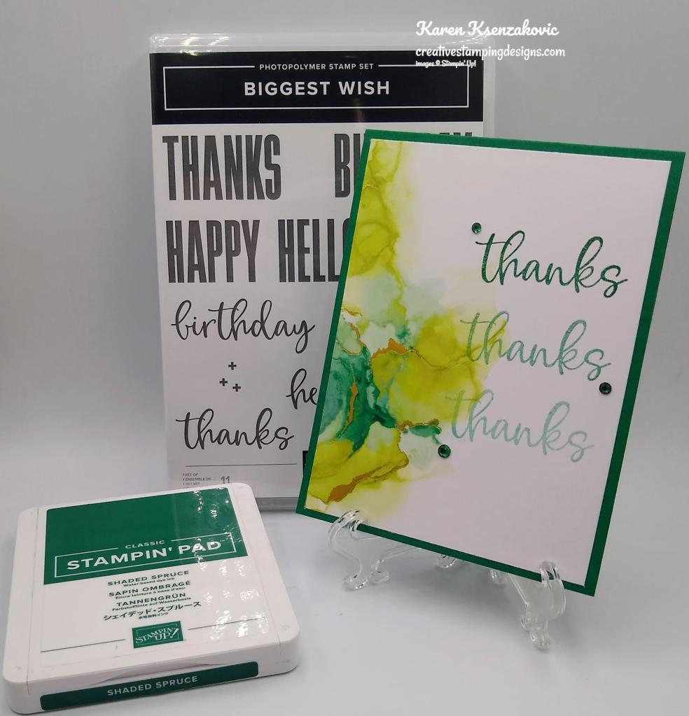 I used the Stampin’ Up! Biggest Wish Photopolymer Stamp Set for my card today along with the Expressions In Ink Specialty Designer Series Paper.