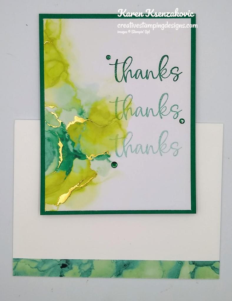 I adhered the stamped panel to a Shaded Spruce card base using Stampin’ Seal.
