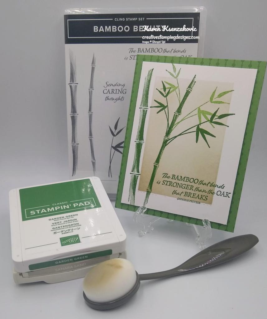 I used the Stampin’ Up! Bamboo Beauty Cling Stamp Set along with the Regals 6 X 6 Designer Series Paper for my card today.