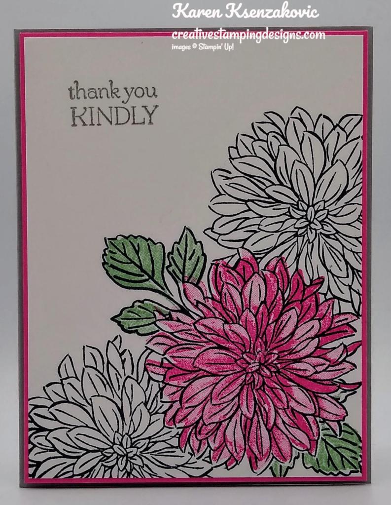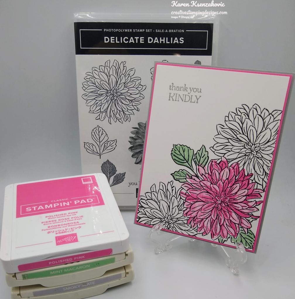 I used the Stampin’ Up! Delicate Dahlias Sale-a-bration Photopolymer Stamp Set for my card today.