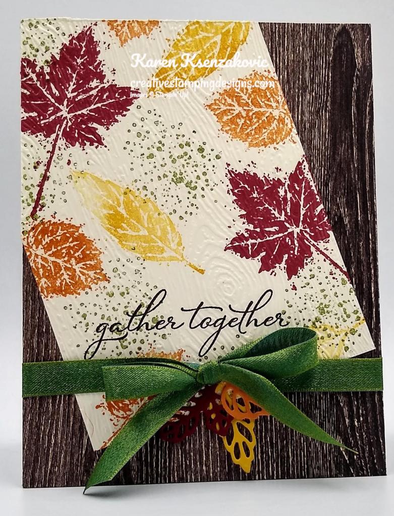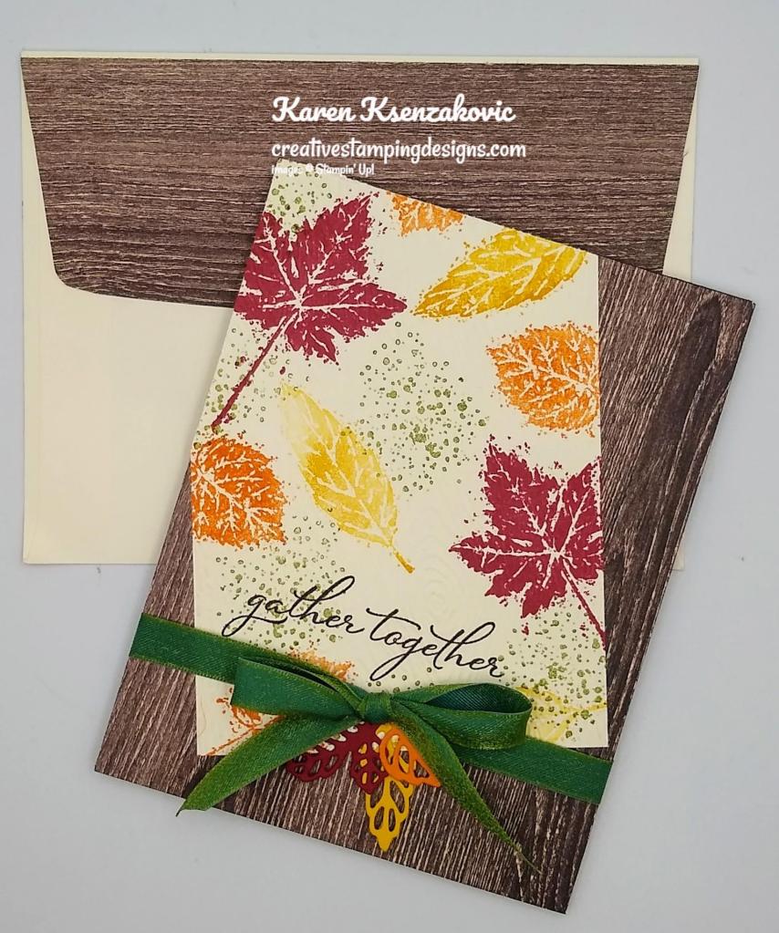 I used the Stampin’ Up! Gorgeous Leaves Bundle along with the Stampin’ Up! Pretty Pumpkins Cling Stamp Set and In Good Taste Designer Series Paper for my card today.