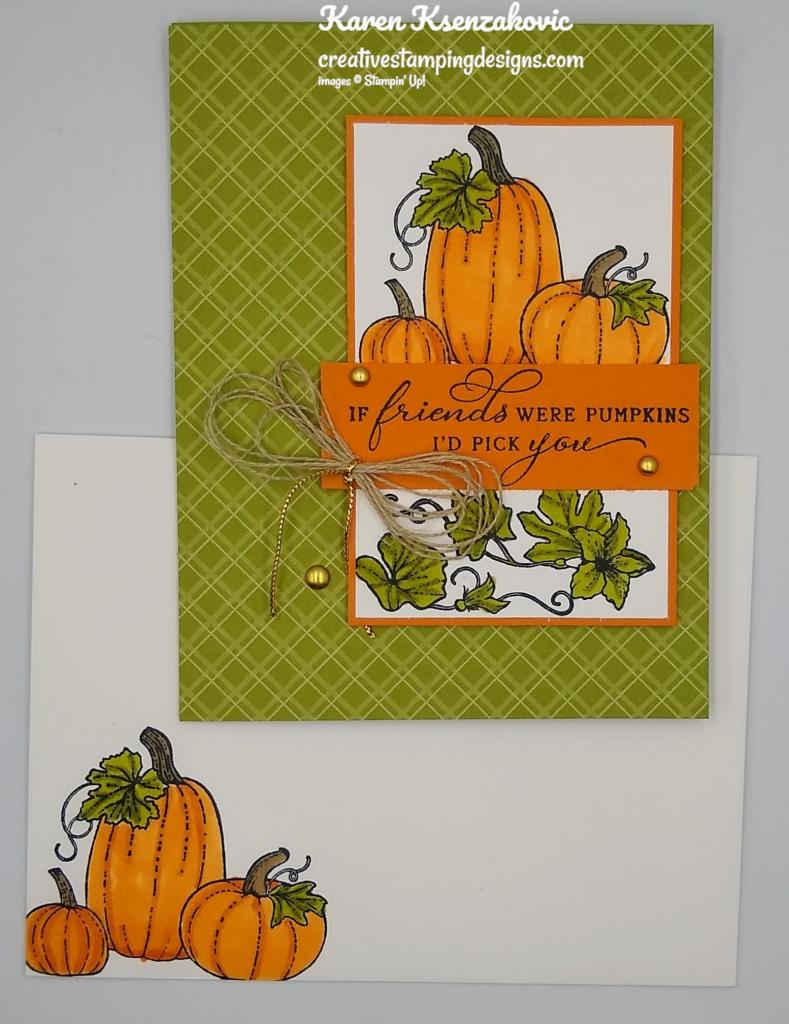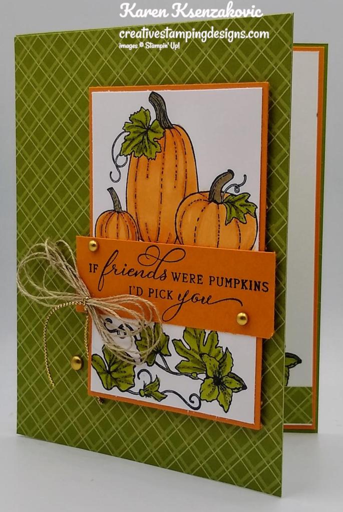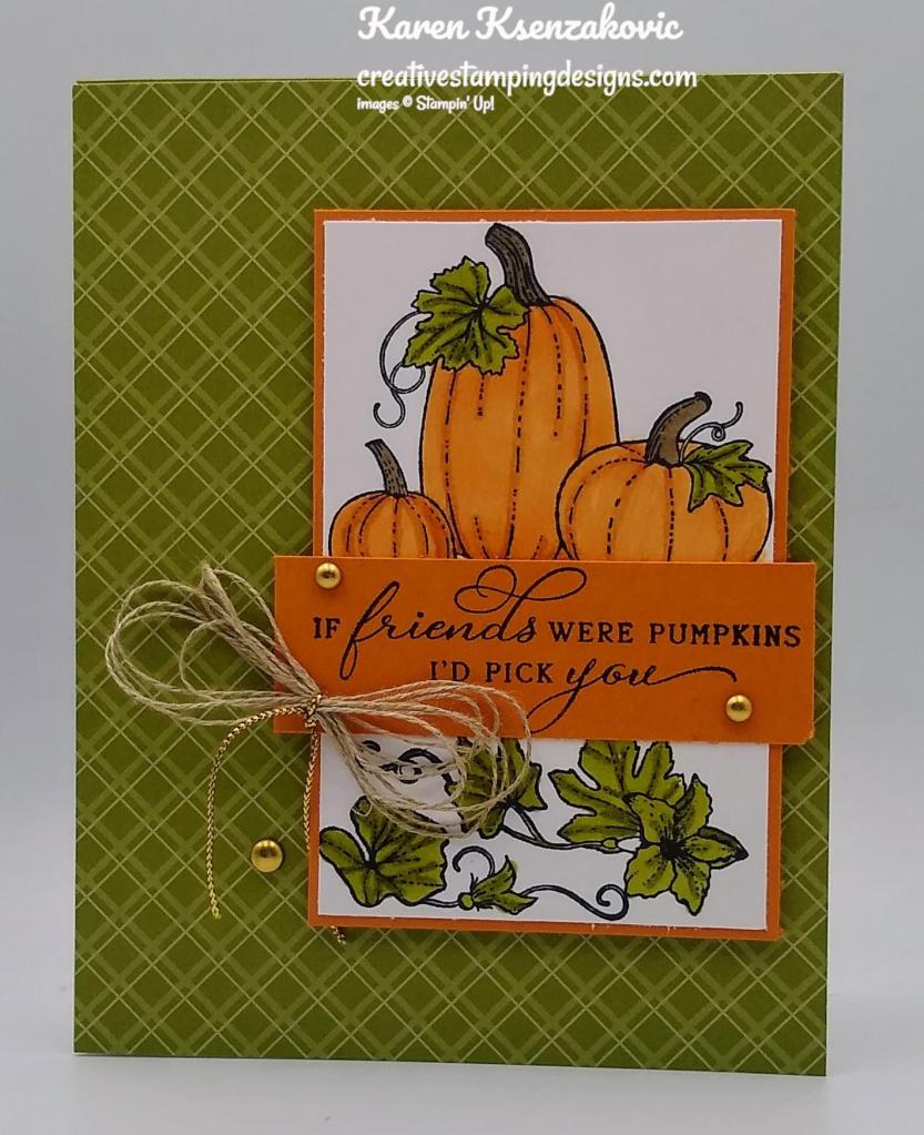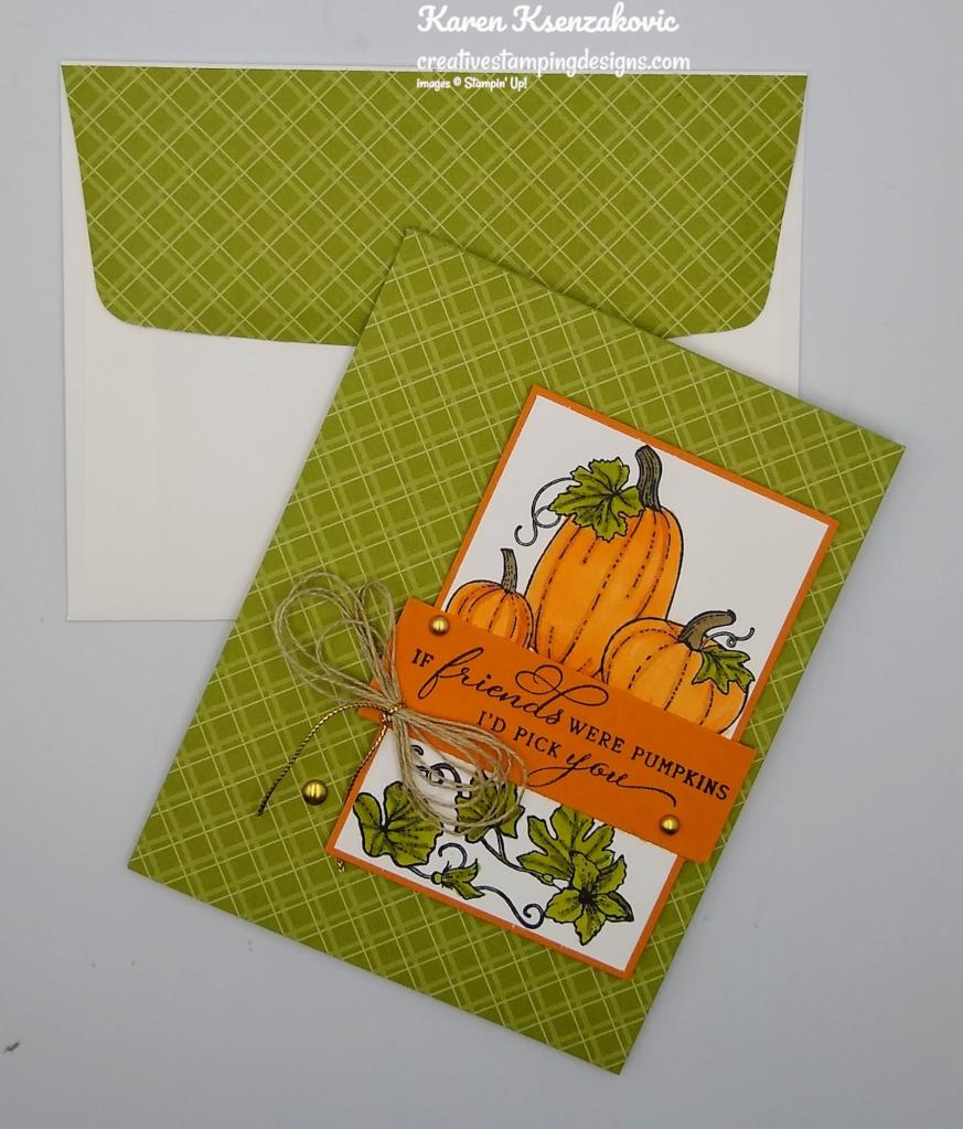 Such a pretty card Karen! The pumpkins are perfect, love the plaid background too! 🙂
