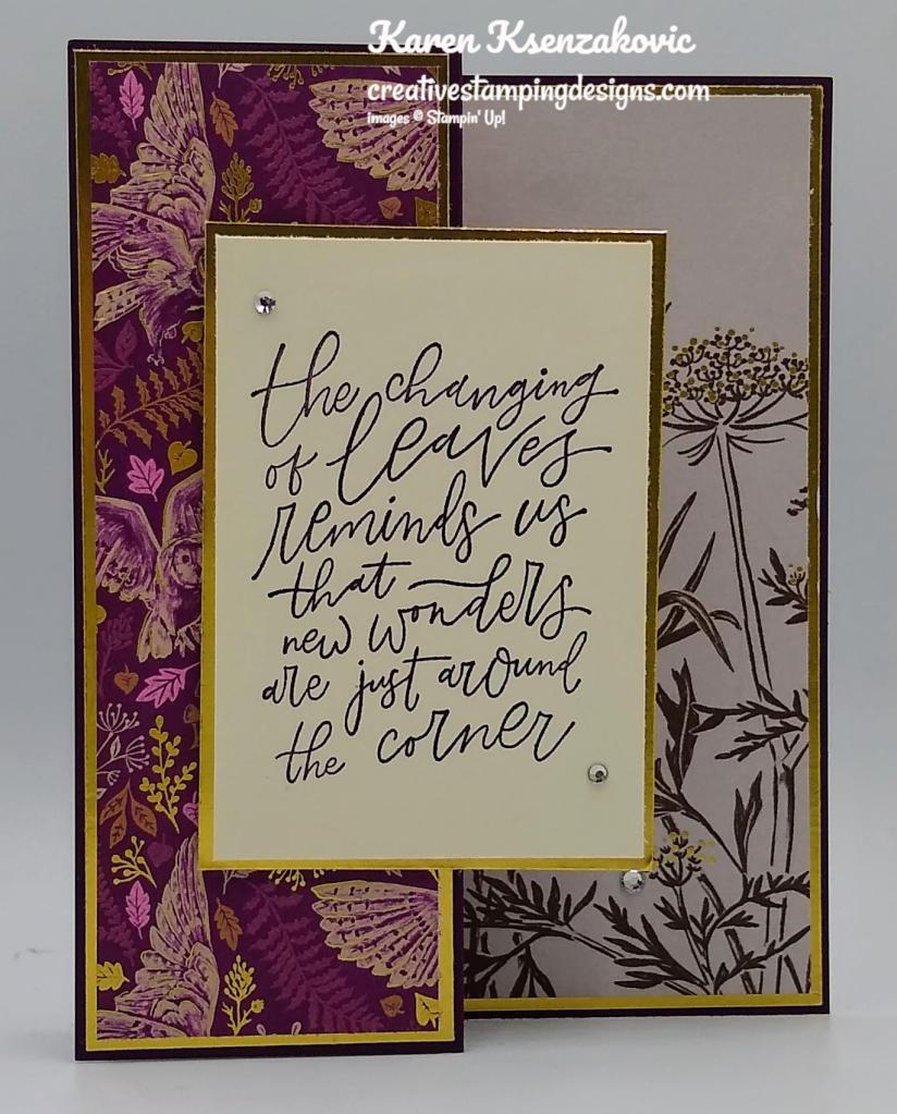 I used the Stampin’ Up! Beauty of Tomorrow Cling Stamp Set along with the Blackberry Beauty Specialty Designer Series Paper for my card.