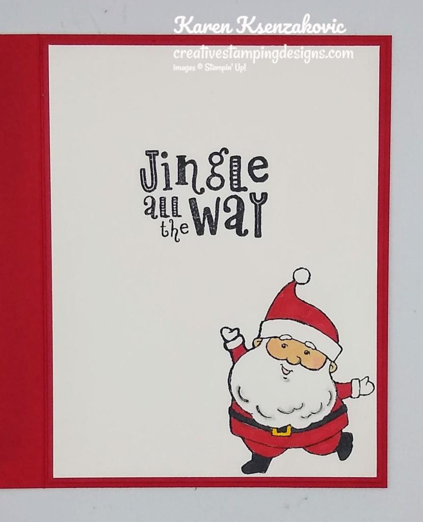 Perfect combination of stamp sets for this fun card! Love the happy, jolly feel with your Santas. TFS