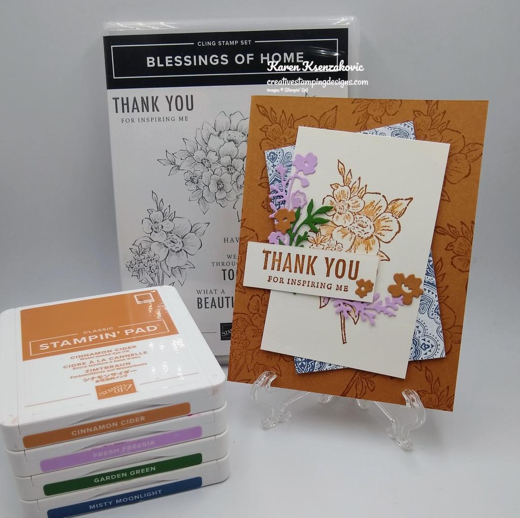 I used the Stampin’ Up! Blessings of Home Bundle along with the Heart & Home Designer Series Paper for my card today.