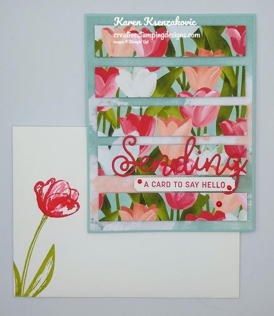 - Brights 6 X 6 Designer Series Paper 4 1/4″ X 5 1/4″ (card front mat), 1/2″ X 4″ (inner liner strip), 1/2″ X 6″ & 2 1/4″ X 6″ (envelope)