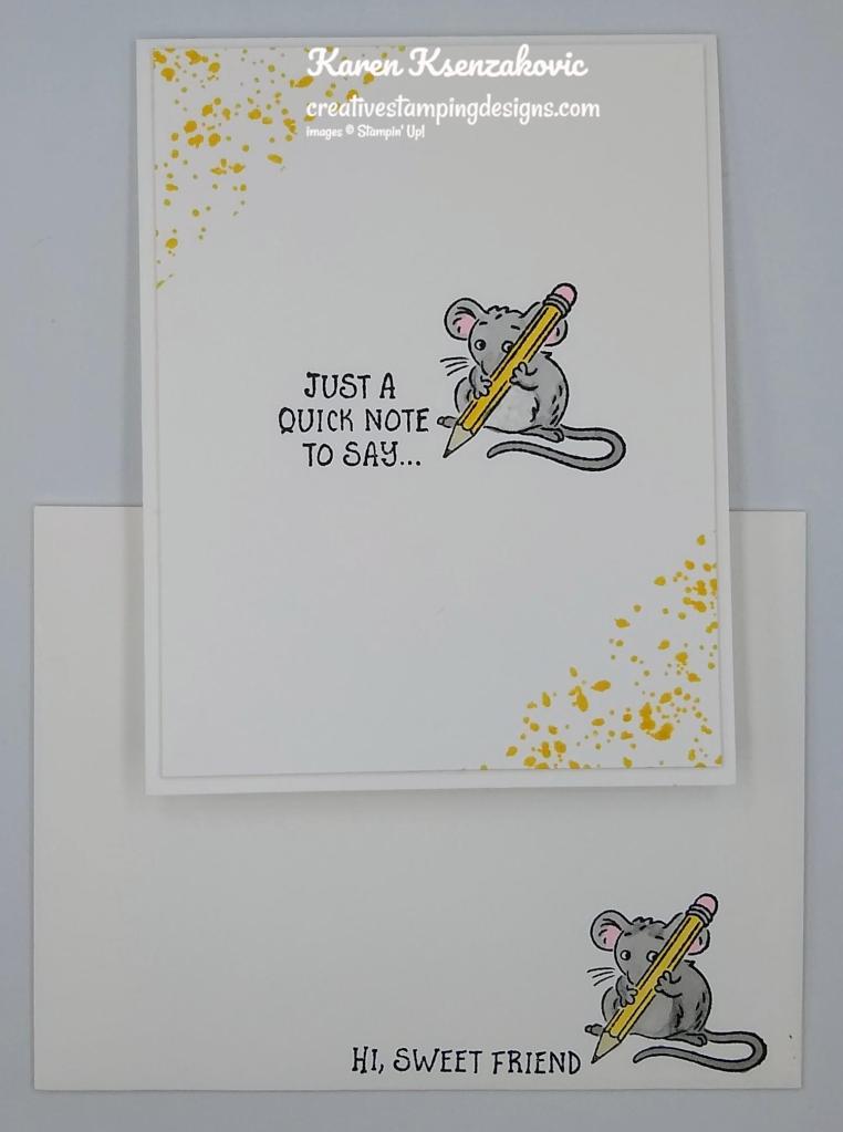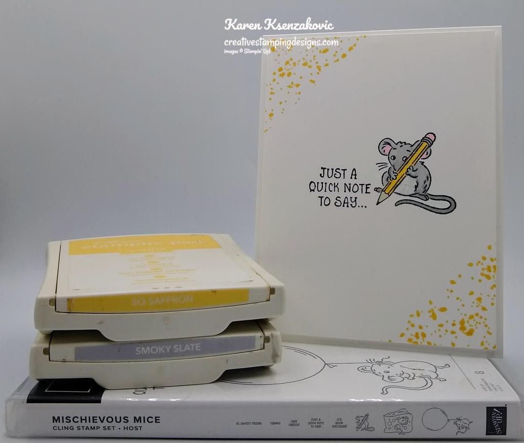 I used the Stampin’ Up! Mischievous Mice Cling Host Stamp Set for my card today.