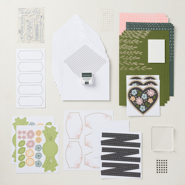 This kit has everything you need to create beautiful, all-occasion cards to express your gratitude. Mix & match card bases, sentiments, pre-cut die pieces, and embellishments to create expertly crafted cards with ease. This kit is just what your collection needs!