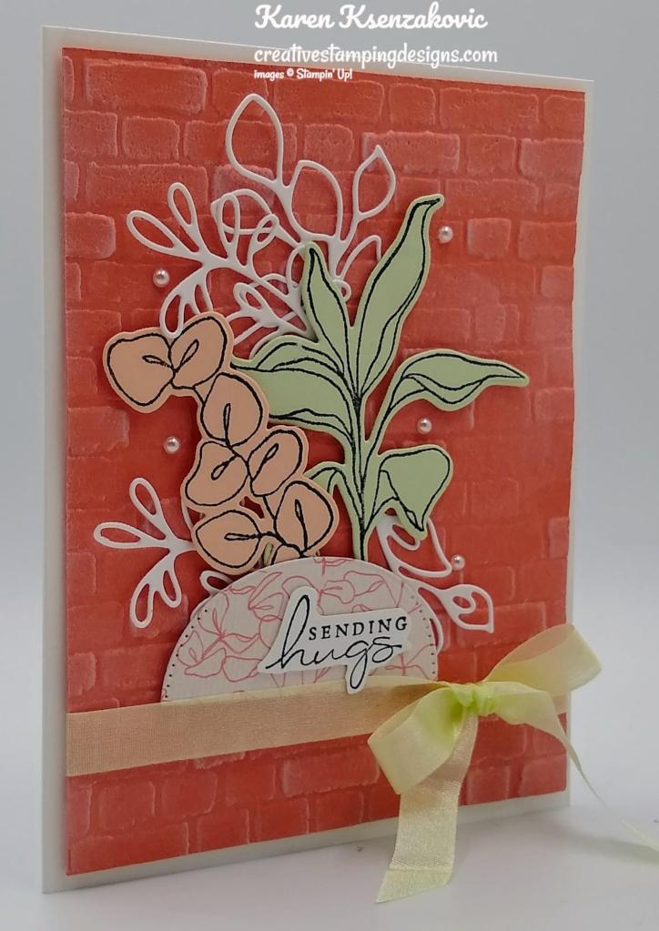 Very pretty Karen! Love the brick wall background, perfect with those greenery images! 🙂