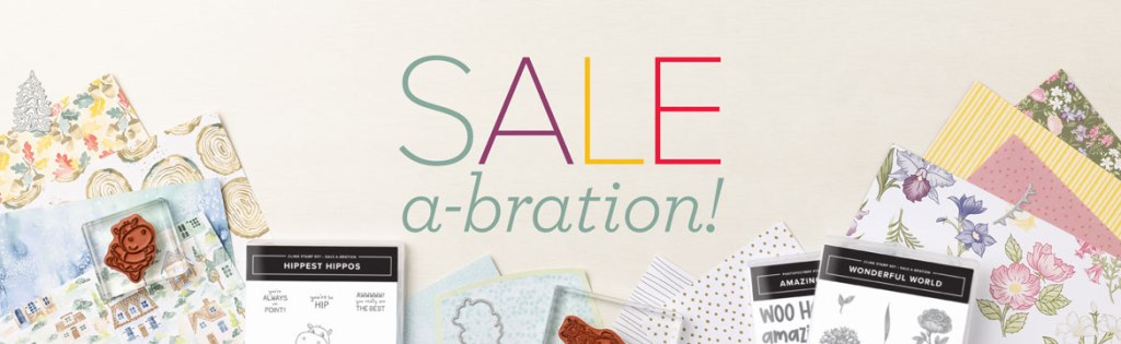 The July-December Sale-a-bration event from Stampin’ Up! is going on now!! There are some awesome new products that you can earn for FREE with orders of $50+ and orders of $100+ placed between July 1 and August 31! Items in the Sale-a-bration catalog are only while supplies last. The Pool Party & Soft Sea Foam Cards & Envelopes have already sold out.