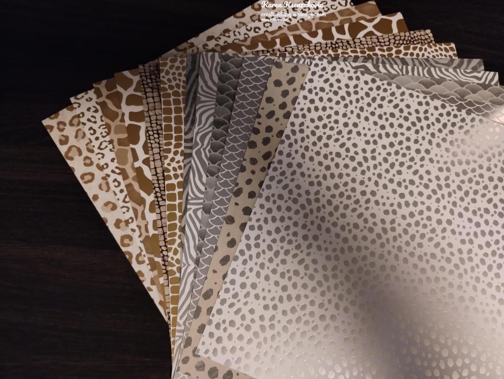 This pack of DSP was the first Prize Patrol given out. It’s called Like An Animal Specialty Paper and the colors in it are Basic Gray, Early Espresso, God, Sahara Sand, Silver and Soft Suede.