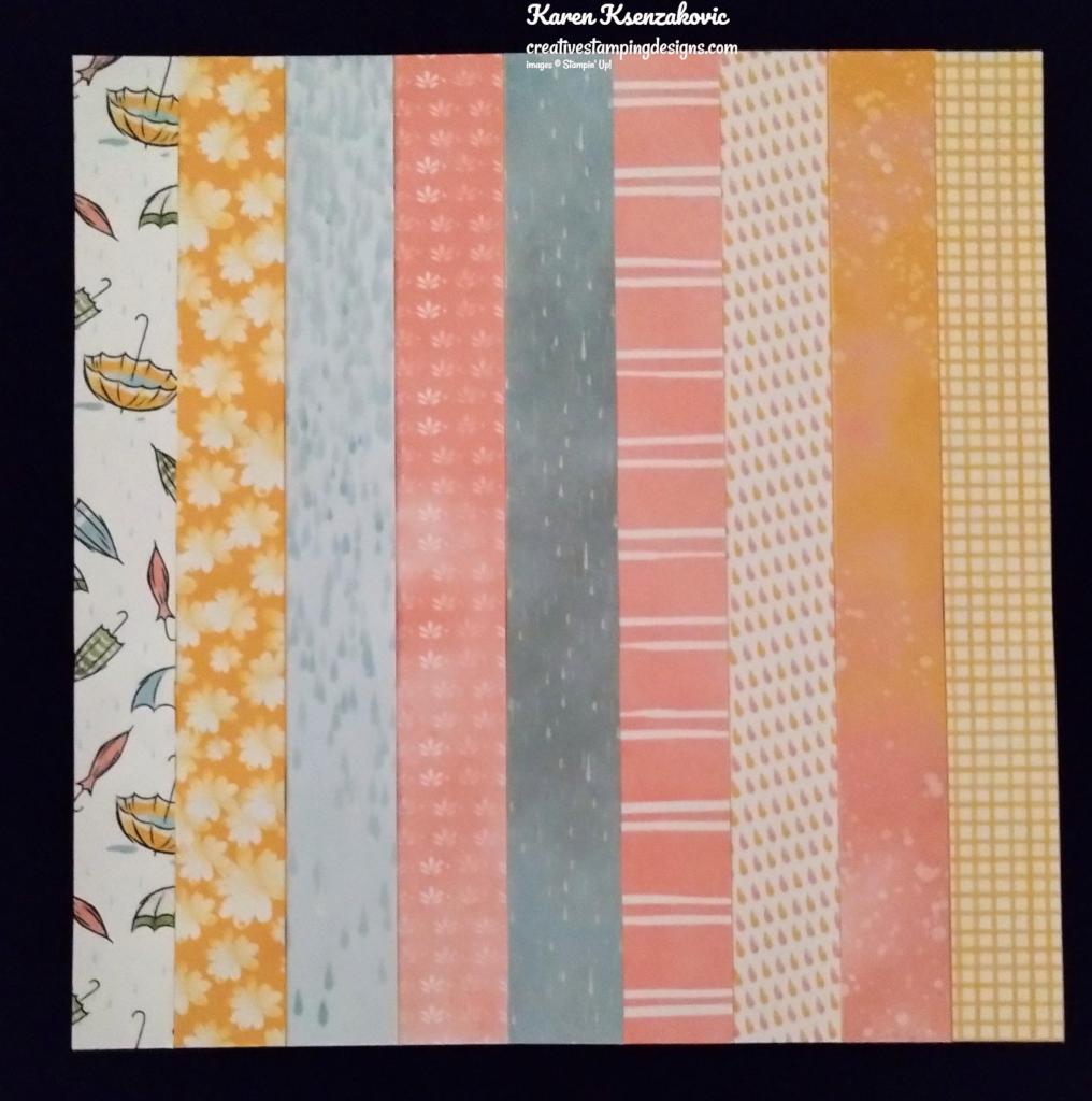 And look at this adorable Designer Series Paper. The coordinating colors are Balmy Blue, Cajun Craze, Flirty Flamingo, Mango Melody and Old Olive. Some of the paper is also has UV Coating.