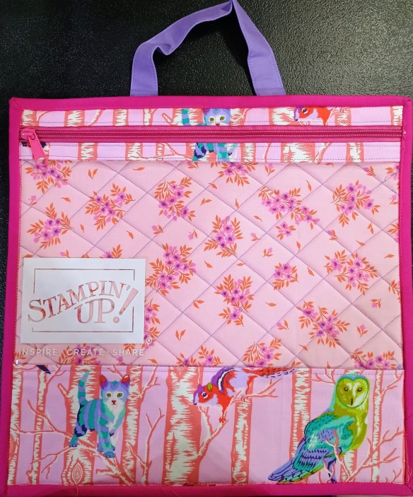 Susan S made us all these gorgeous Zippered Craft Bag carriers. She is so talented. We each got a different design. Susan S is our fun Brit friend.