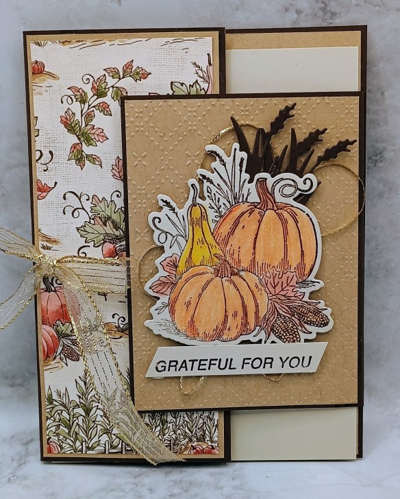 This pretty fun fold card was designed by Tara Carpenter. This one used the new Beautiful Pattern EF that will be available November 4th.