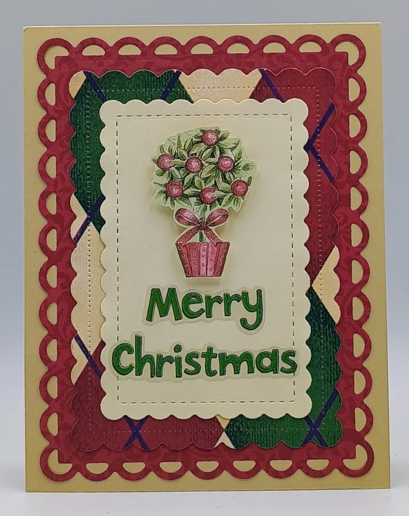 Good Friday afternoon stamping friends. How was your Christmas? Ours was very quiet and enjoyable. My son and his fiancé come over Christmas Eve for dinner and to exchange gifts. They came back over on Christmas day to open stockings together. My daughter came home Christmas morning (she’s away dog sitting this week) for our traditional Christmas morning gift opening and Popovers. She headed back to spend time with the pup she’s staying with for a couple hours, then came back for Christmas dinner. Does anyone go out for the after Christmas sales today? I’ll be staying in to finish up a couple gifts that I started and waiting for the snowstorm to start.