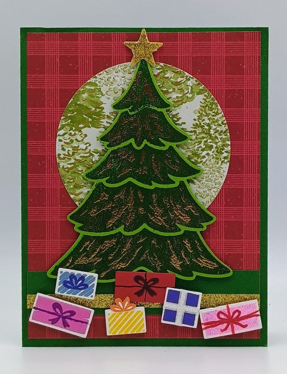 This beautiful card is from my team member and friend Kathi W. I just love the layered tree, and the DSP is the perfect background.