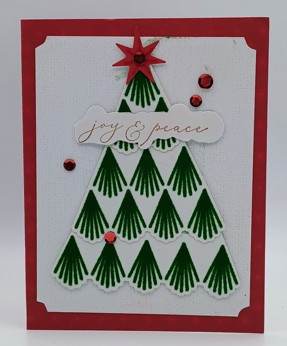This pretty card was made by my team member and friend Shirley. I just love the velvety texture of that tree.