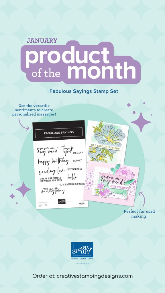 Send thoughtful messages with style using the Fabulous Sayings Stamp Set! This versatile stamp set features all-occasion sentiment stamps for birthdays, thank-you notes, love, friendship, and support cards. The mix of a handwritten script with a classic serif font pair beautifully with a wide range of card making and paper crafting styles. The Fabulous Sayings Stamp Set is the exclusive Product of the Month for January 2026! Only available until stocks run out—don’t wait to get yours! This is a Two-Step Stampin’ set; it allows you to layer two or more images to create one final image with extra texture and dimension in the colors you want.