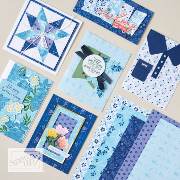 The December Product of the Month is available and it’s beautiful. The True Blue Florals 12 x 12 Designer Series Paper is available for $5 with a qualifying order of $75 + before shipping & tax, but only while supplies last.
