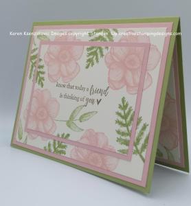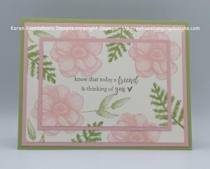 Today’s card I used the gorgeous Distinctive Stampin’ Up Painted Seasons Stamp Set and the Stampin’ Up Part Of My Story Stamp Set. I also tried the Double Time Technique for my card. I am really going to miss this Distinctive set. Here’s my card.