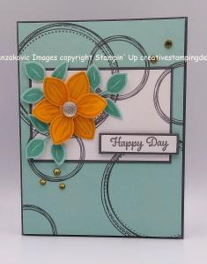 I have a pretty easy card for you today, though it does look a little involved, it’s not. I’ve used a few different stamp sets for you today. Here’s my card.