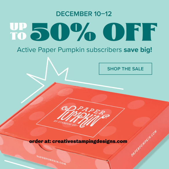 Big savings start today! From December 10–12, Paper Pumpkin subscribers can get up to 50% off on refills, past kits, and add-ons! Bonus: the sale items also qualify for FREE SHIPPING during the sale!