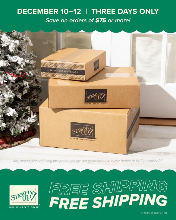 Stampin’ Up! announced that they are offering FREE shipping on orders of $75+ from December 10-12!!