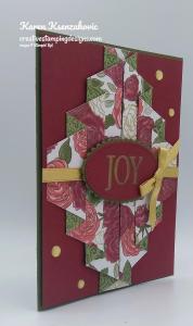 I used the Stampin’ Up! Christmas Classics Photopolymer Stamp Set along with the Merry Bold & Bright Designer Series Paper, Stylish Shapes Dies and 2 3/8″ Circle Punch for my card today.